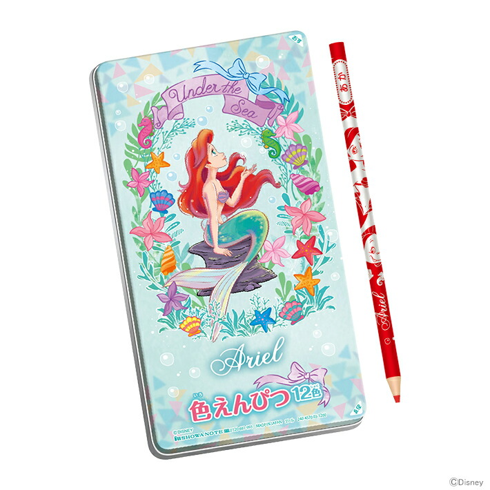 Paypayフリマ 送料無料 Disney アリエル 色鉛筆 12色セット ケース付 色えんぴつ いろえんぴつ ディズニープリンセス リトルマーメイド ショウワノート